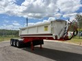 Mammoth Transport Equipment Side Tipper. 47-tonne ATM, an 8.7m bin length, and a 23m³ capacity. Equipped with a PTO setup, rubber hinge, and single action door.